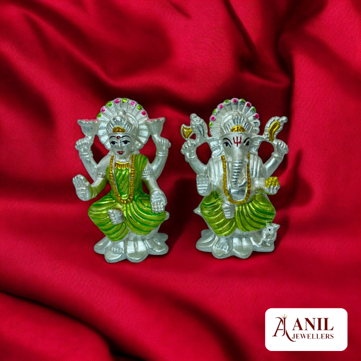 Let this silver Ganesh and Lakshmi Ji murti bring positivity, divine grace, and timeless beauty into your home or sacred corner. A premium product from Anil Jewellers, crafted with love and devotion.
